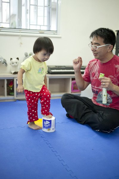 - 假裝與幼兒比賽鬥快運球,以挑戰他的穩定力