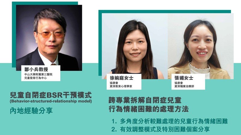 是次特别举行培训讲座,与业界分享支援学前自闭症学童的心得。透过多个真实个案,讲解如何从跨专业角度分析及介入各种棘手的情绪行为。同时,亦邀请了国内知名的儿童康复专家,分享内地经验与介入手法。