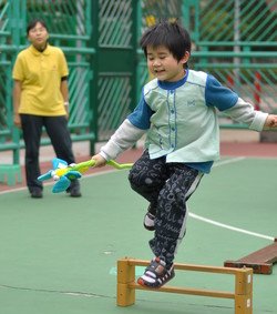 当儿童发展至学龄阶段,体能方面会由基础动作的发展衔接到体育运动的培训,物理治疗师设计一系列的展能运动训练(如:田竞模拟、队制接力赛、球类运动等),让儿童掌握各类运动的基本技巧和社交反应,培育对运动的兴趣,能融入社区体育运动兴趣班,以及在运动场上一展所长,发挥体育精神,享受运动的乐趣。