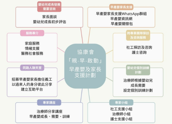 早产婴支援服务早於2017年启动,不断发展及持续优化服务。承蒙香港公益金资助於2024年3月起,推展为期三年的「亲・早・启动-早产婴及家长支援计划」。由跨专业团队(社工、专职治疗师及护士)为0-3岁早产婴家庭提供支援。本计划将惠及1,500个早产婴家庭,并提升公众对早产婴的关注。