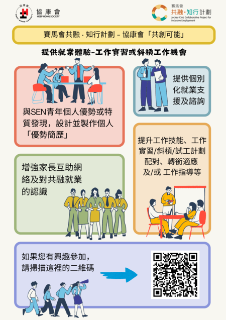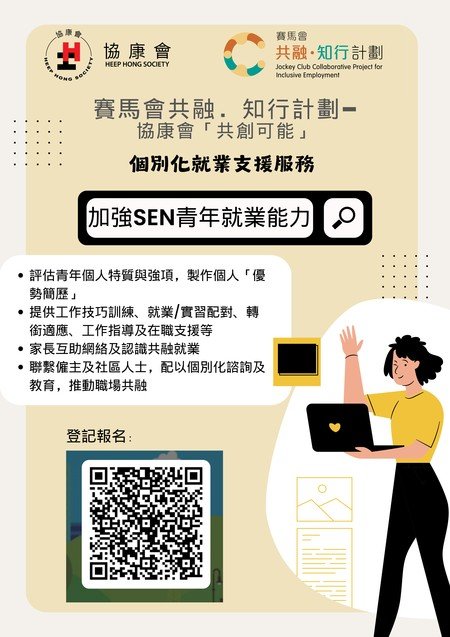 - 欢迎雇主及社区人士,如有意聘请特殊学习需要青年 或 协作推动职场共融,可与计划经理联络