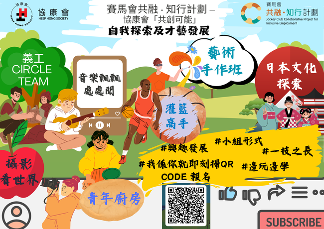 由香港赛马会慈善信托基金捐助,为期三年的赛马会共融.知行计划 – 协康会「共创可能」 (下称本计划) 於2024年9月开展第二阶段(为期三年),联同香港大学、香港教育大学及另外五间社福机构,透过多面向的能力提升与展现,旨在强化特殊教育需要(SEN)青年的整体就业能力,并著重增强各界别对共融就业的支持。