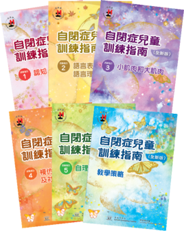 《自闭症儿童训练指南》(全新版)一套六册,包括一册《教学策略》,内文详述自闭症儿童的特性和学习特点,并剖析结构化教学法的训练原理和实行方法;以及五册《活动指引》,分别涵盖认知;语言理解和语言表达;小肌肉和大肌肉;模仿、情感表达及社交活动;及自理等范畴。随书备有二维码,内附结构化教学法的施行步骤,教材相片和图片,方便教师和家长列印使用。