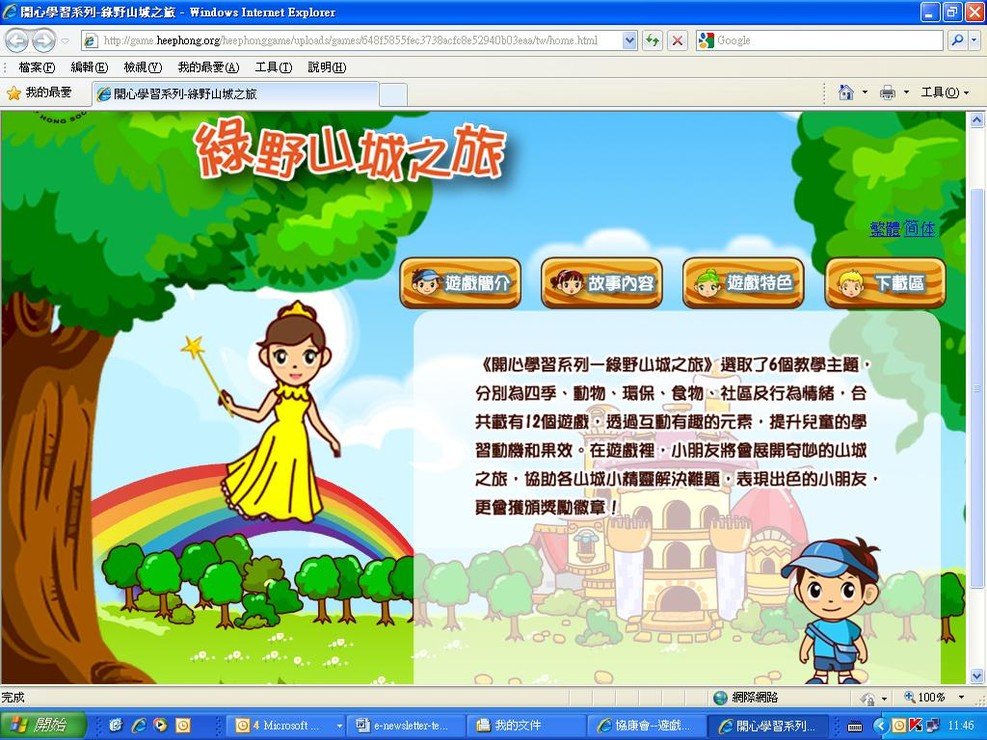 《开心学习系列-绿野山城之旅》获「携手扶弱基金」赞助制作,六个主题教学均与生活息息相关,包含12个活泼有趣的互动学习游戏,儿童可按能力拣选初阶或进阶水平,由浅入深,循序渐进;导师和家长亦可选取适用的部份作辅助教材,让儿童寓学习於游戏中。游戏设有「个人成绩表」,让导师和家长随时查看儿童的分数记录,有助掌握儿童的学习情况。