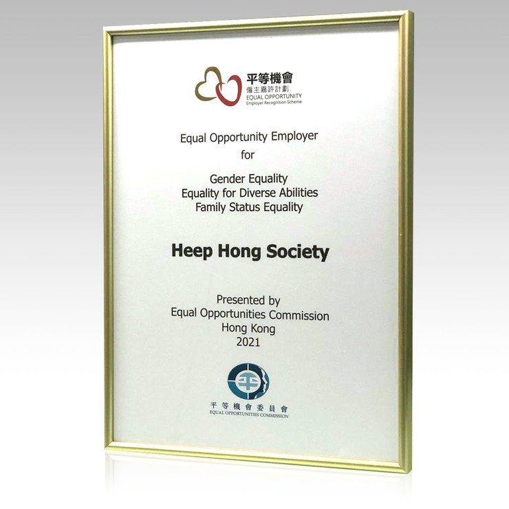 本会今年参加了「平等机会雇主嘉许计划」,经平等机会委员会的专业团队评审后,在420份申请中突围而出,有幸获颁发三项嘉许:「平等机会雇主 (性别平等)」、「平等机会雇主 (伤健平等共融)」及「平等机会雇主 (家庭岗位平等)」。 协康会一向以人为本,积极推动平等就业机会和多元共融,并采用良好的平等机会政策及常规措施。是次嘉许是对本会推动平等就业工作的肯定,本会将继续推动共融文化,缔造平等工作间。