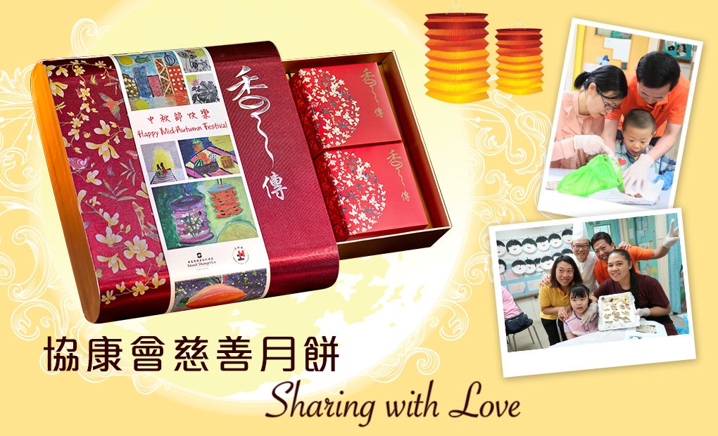 协康会今年再度与Island Shangri-La, Hong Kong港岛香格里拉大酒店合作,义卖慈善月饼礼盒,所得收益扣除成本后将全数拨捐本会儿童及青年训练基金,以资助有特殊需要和经济困难的儿童及青年接受训练。