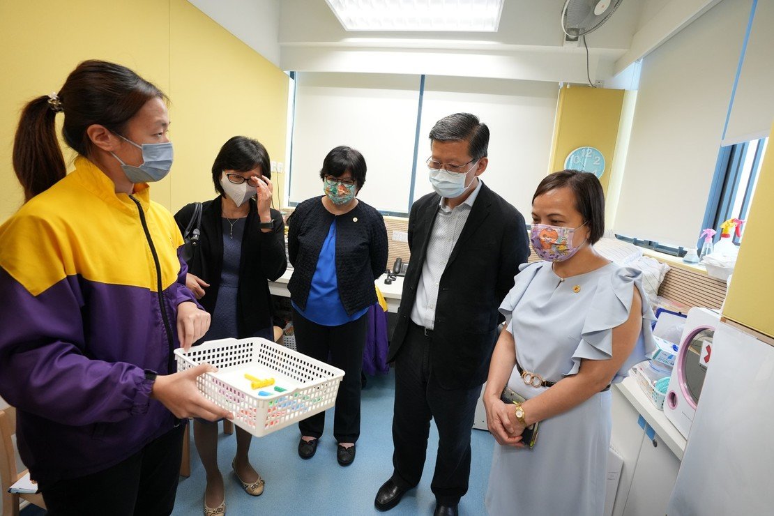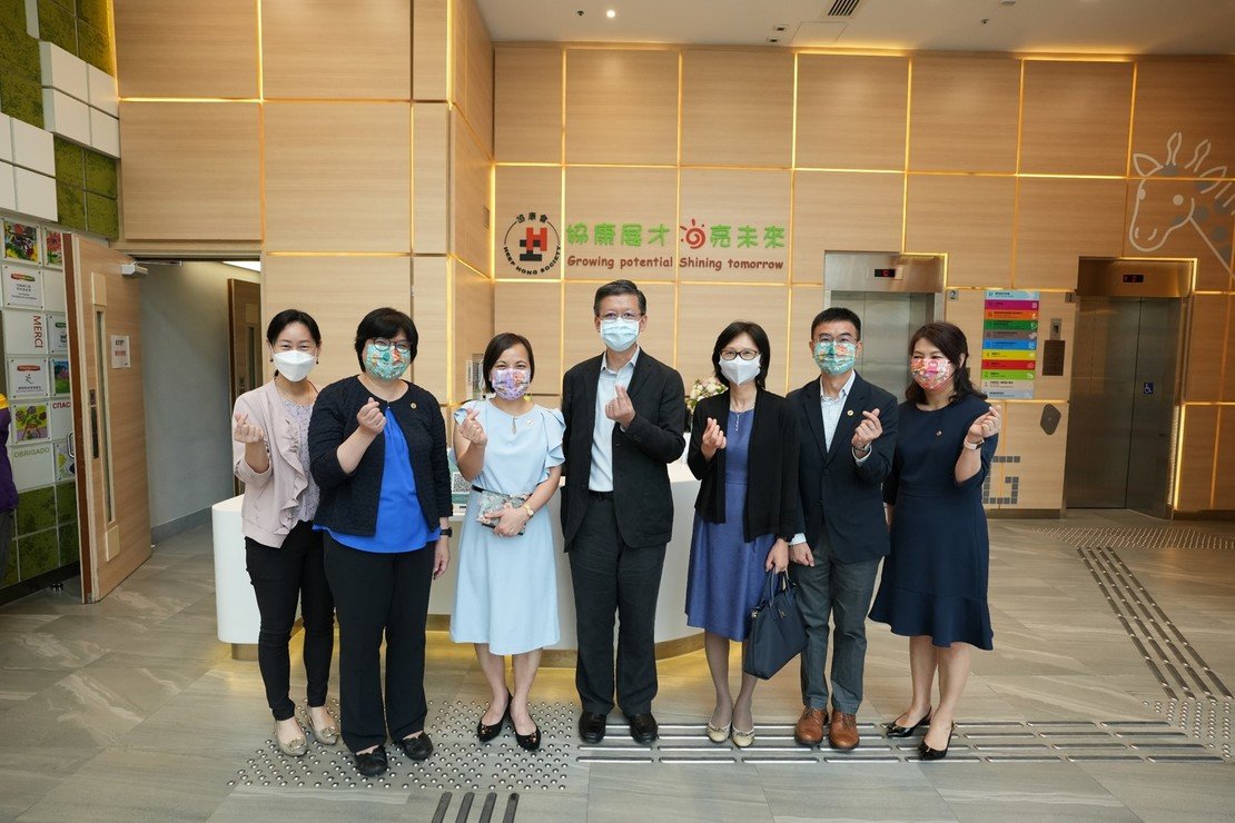 社会福利署署长梁松泰太平绅士和助理署长叶巧瑜女士於6月7日到访协康会综合服务大楼,先后参观特殊幼儿中心、早期教育训练中心及家长资源中心服务运作,并了解恒温水疗池、户外攀石墙、室内攀网、采用VR及AR技术的社适乐园、机械人、星亮职训餐厅职等训练设备;两位嘉宾对大楼的设计概念、一条龙服务模式、先进及新颖的专业训练策略和设备表示欣赏。
