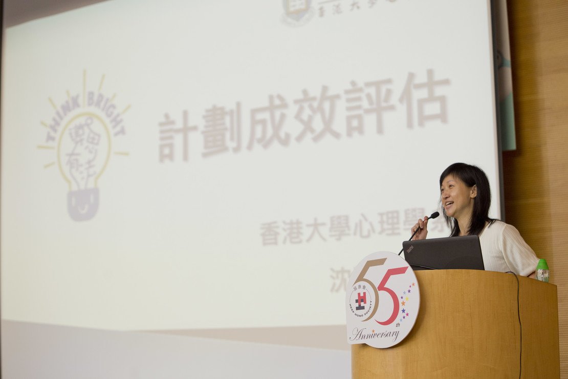 本会研发「Think Bright 导思有法」的过程,得到香港大学的研究团队支持,共同进行的成效研究。是次讲座,首先由本会教育心理学家姜源贞介绍「Think Bright导思有法」计划理念及背景,并邀请了香港大学心理学系助理教授沈嘉敏博士公布研究结果。初步研究发现,儿童接受6个月的「Think Bright导思有法」训练后,在逻辑思维、解难能力和语言能力方面均有显著进步。由於成效显著,此套训练方法将陆续於本会「到校学前康复服务」的幼稚园推行,更希望能推广至全港幼稚园,惠及更多学童。