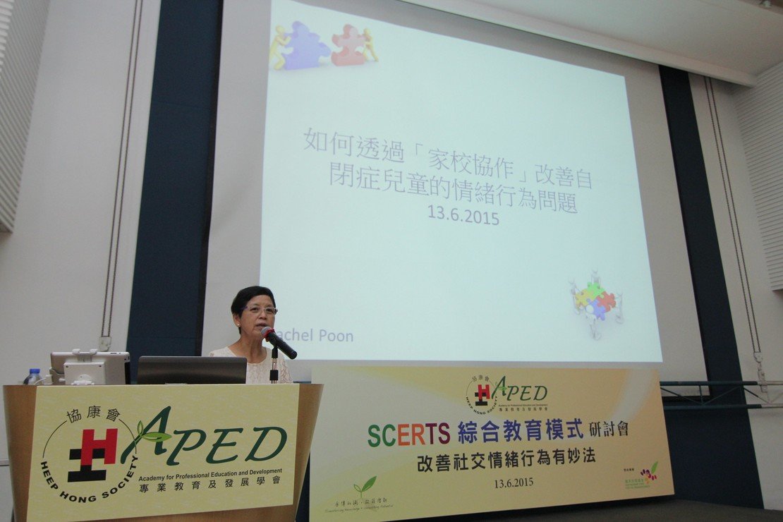 協康會於2015年6月13日(六)舉辦「改善社交情緒行為有妙法-SCERTS Model研討會」,邀請香港中文大學心理學系客座副教授潘麥瑞雯博士講解如何透過家校合作支援自閉症學童,並由本會SCERTS專責小組講解SCERTS(Social Communication, Emotional Regulation, Transactional Support)自閉症綜合教育模式的理念,以及在學校及家居的具體推行策略及方法,同場發布《知情解意:SCERTS綜合教育模式應用手冊》及用「知情解意」應用程式,觀眾反應熱烈,逾340名專業人士、幼兒教育工作者及家長參加。