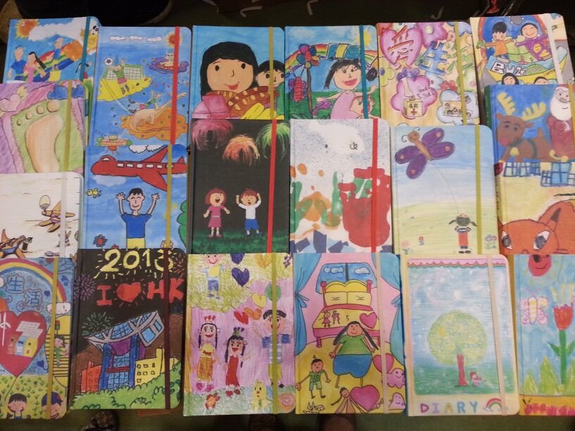 其中一款義賣的日記,封面由協康會12位有發展遲緩、大腦痲痺等特殊需要學童聯「手」製作