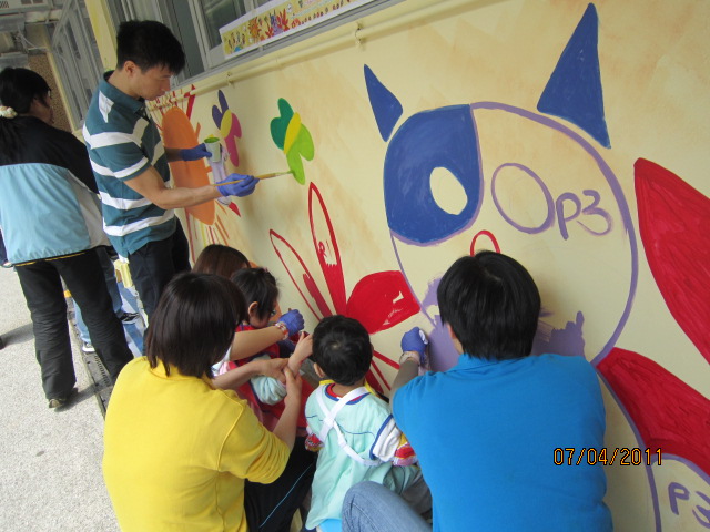 40 enthusiastic staff members from the Corporate Real Estate Services Department of Standard Chartered Bank (Hong Kong) Limited joined forces with centre children to beautify the exterior walls of the West Wing of Wan Tsui Centre on 7 April 2011.