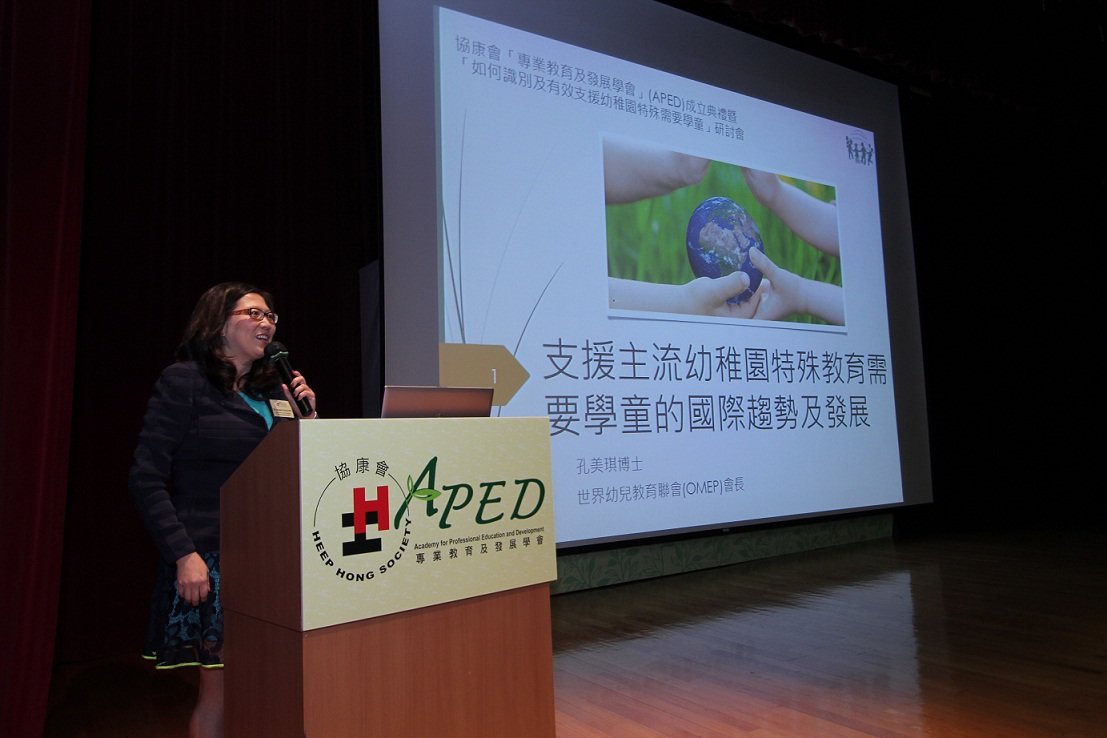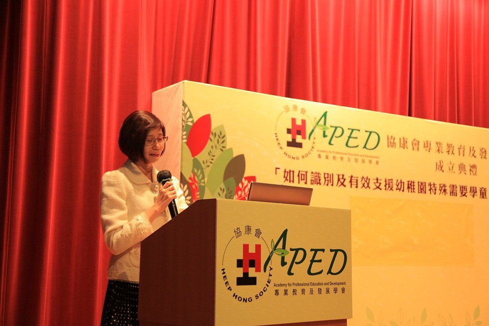 On the same occasion, APED held the Seminar on ‘Early Intervention and Integrated Support Identification and Support for Kindergarten Students with Special Educational Needs’. Dr Maggie Koong, World President of the World Organization for Early Childhood Education, shared her views on the international trends in support services for special needs children at kindergarten, while the professional team of the Society elaborated on practical methods to identify and support those children. Their informative and engaging presentations were applauded by the participants.