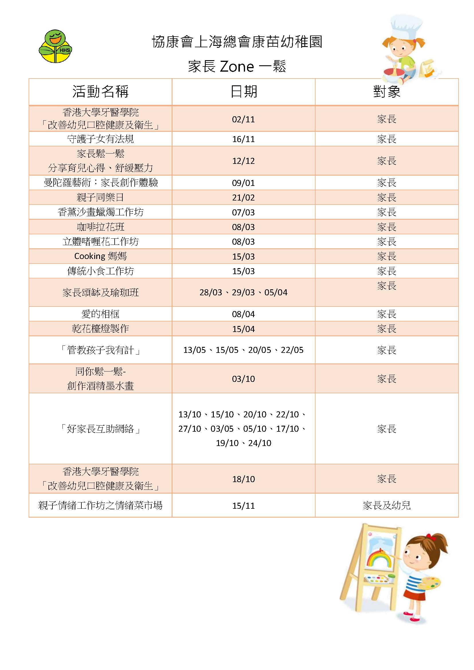 | 其他家长讲座及工作坊详见学校派发之通告 |