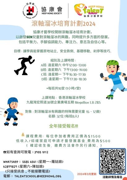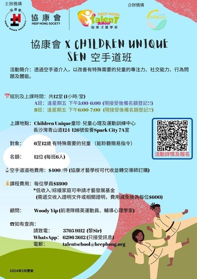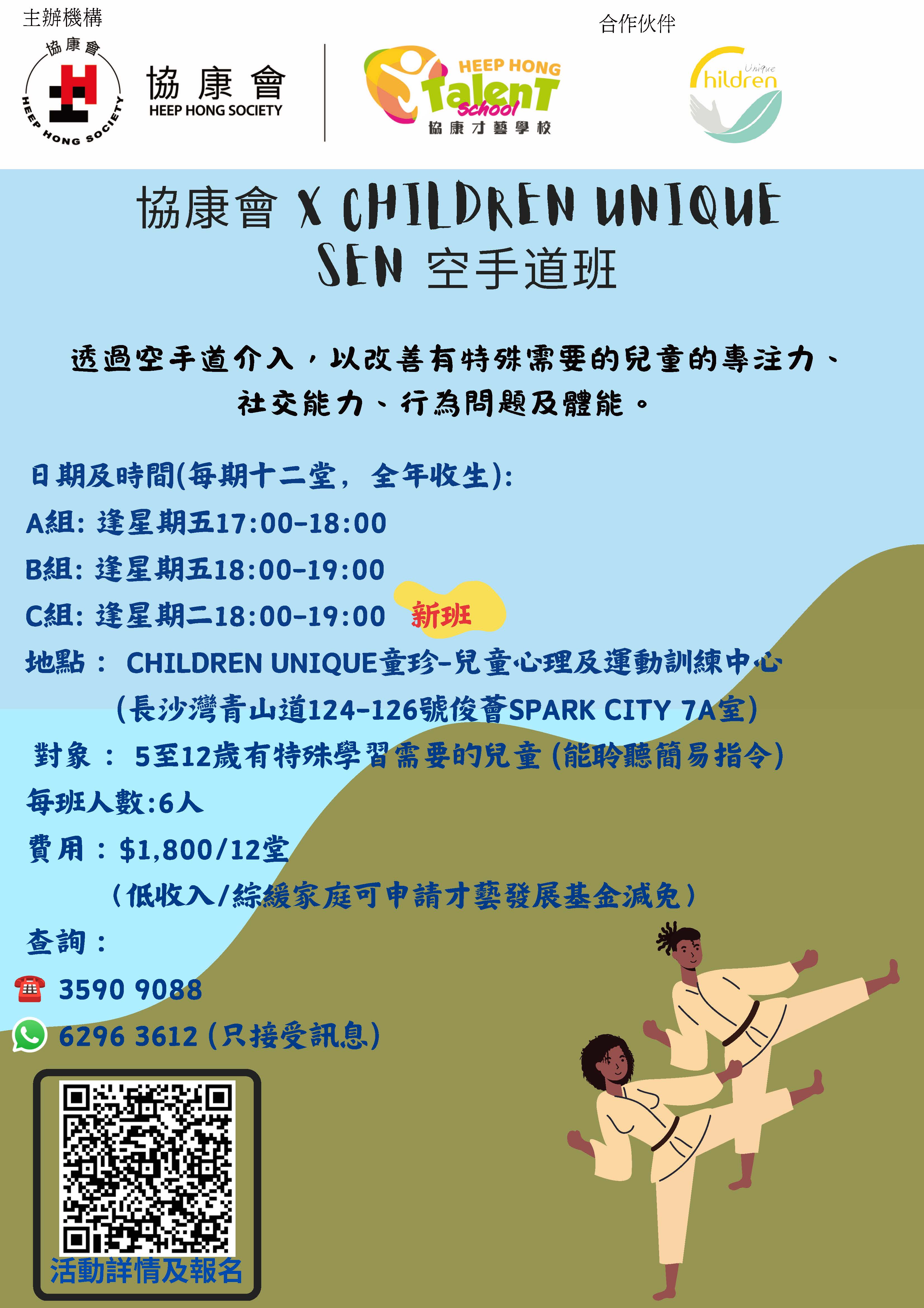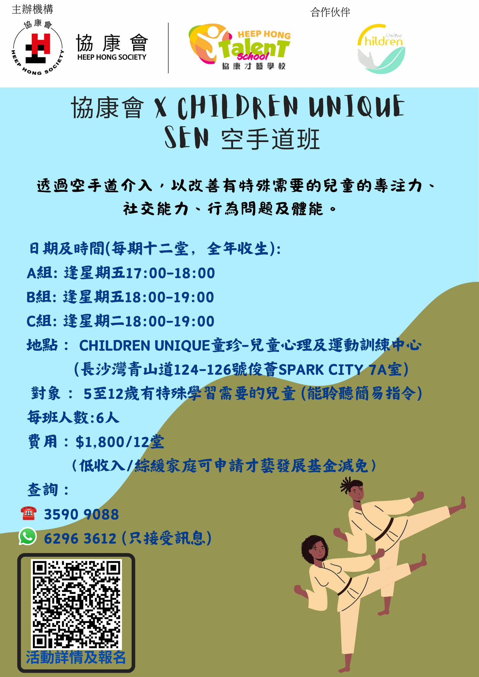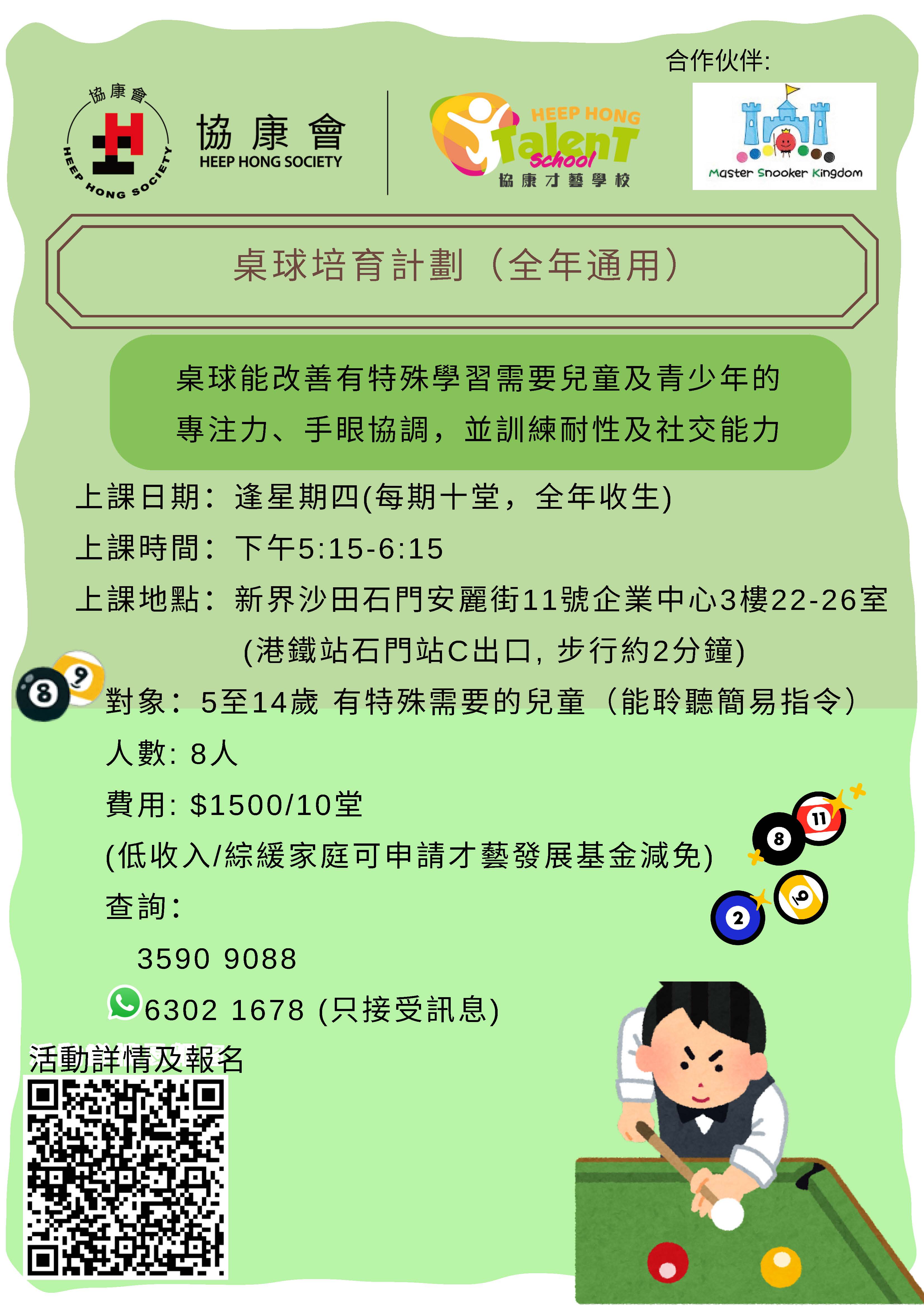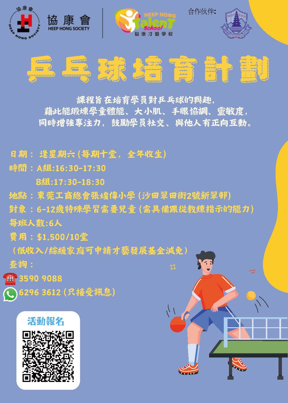 | POP Dance | 透過音樂及舞蹈動作訓練,提升學童的身體協調能力 | 5-12歲SEN學童 |