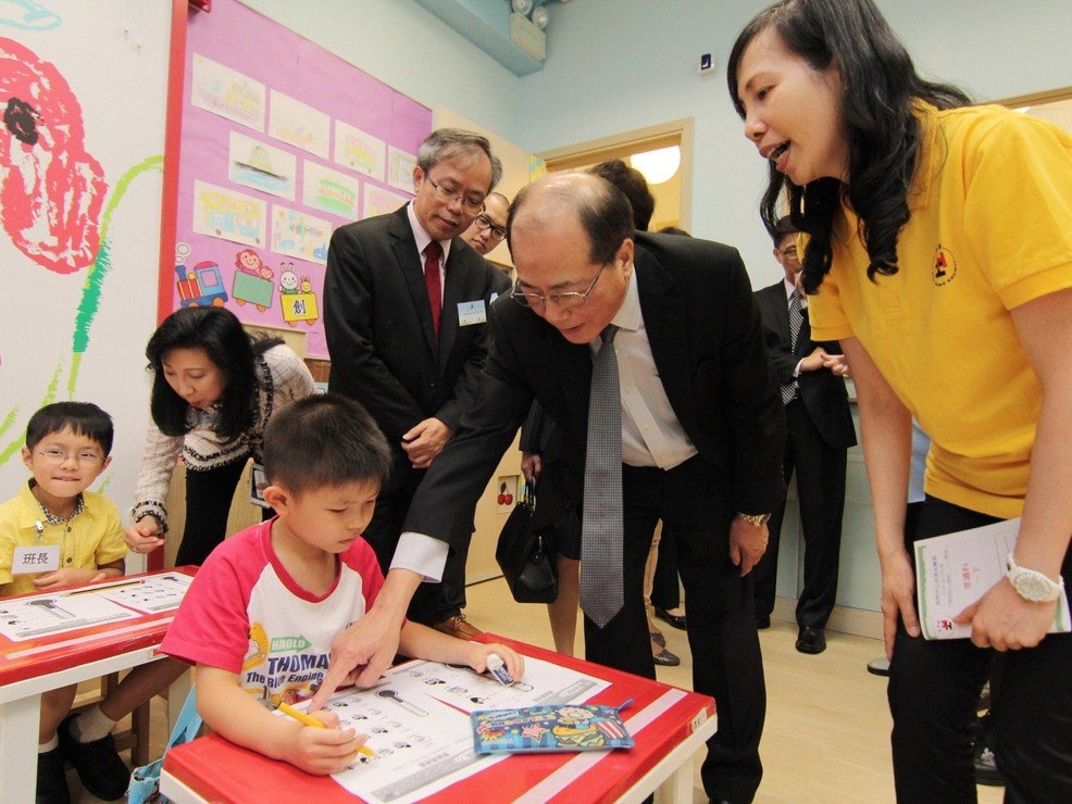 教育局局長吳克儉、常任秘書長黎陳芷娟及副局長楊潤雄今日(5月13日)到訪協康會,參觀本會率先推行的「幼稚園有特殊需要學童的早期介入和綜合支援計劃」,並與多位家長、幼稚園校長和老師會面,聽取他們的意見,作為對制訂免費學前教育和支援特殊學童政策的參考。