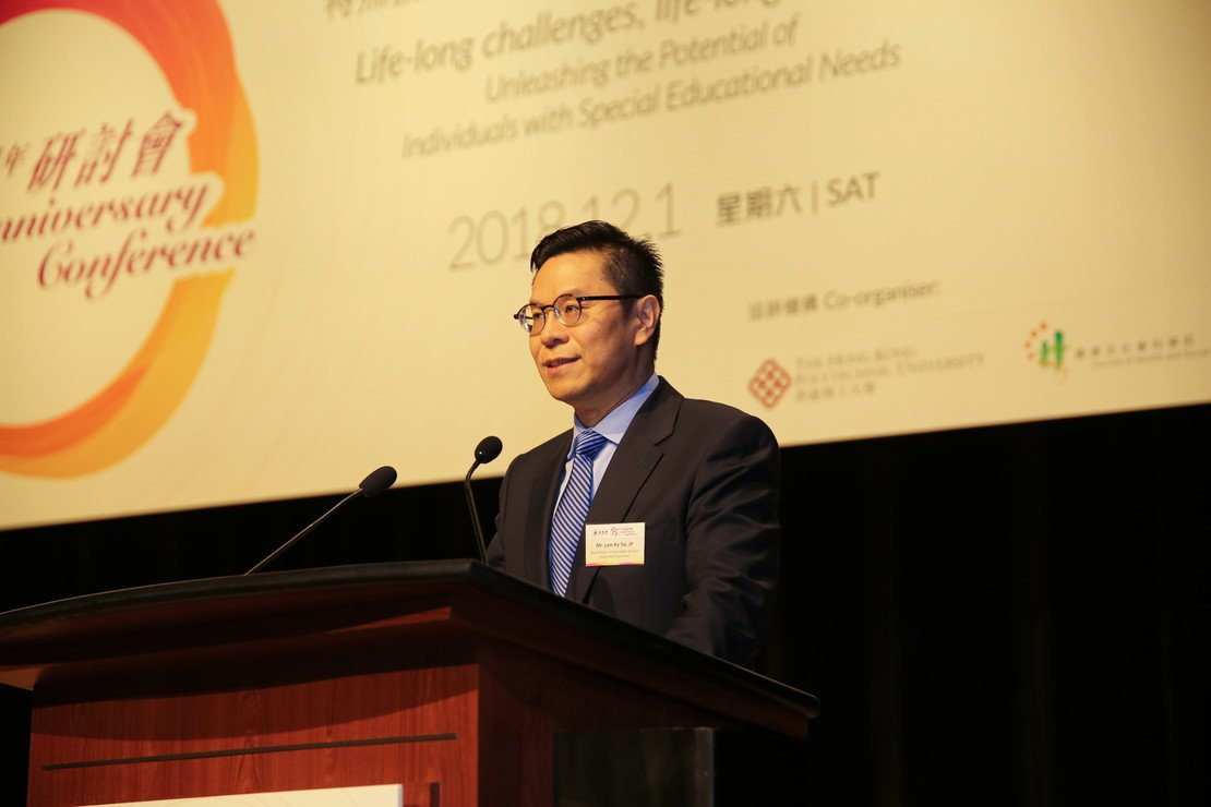 社會福利署副署長(服務)林嘉泰JP致歡迎辭時指:「協康會在過去55年不斷開創創新服務,惠及有特殊需要人士及其家人,其中最成功的例子,就是先行推出到校學前服務模式,成為社署推行『到校學前康復服務』的藍本,到今日發展成恆常化服務,讓輪候資助服務的幼兒能夠得到即時支援。相信今日的研討會除了能為業界帶來啟發,更可有助香港推行融合教育。」