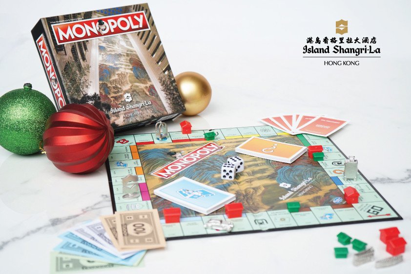 港島香格里拉大酒店今年特別以酒店主要設施為主題,製作了便攜特別版大富翁,每盒大富翁約15cm(長) x 15cm(闊) x 4cm(高),棋盤約27cm(長) x 27cm(闊),方便攜帶,每盒佳節價HK$280,歡迎於港島香格里拉大酒店或透過各中心購買。查詢請致電港島香格里拉大酒店(電話:2877 3838)