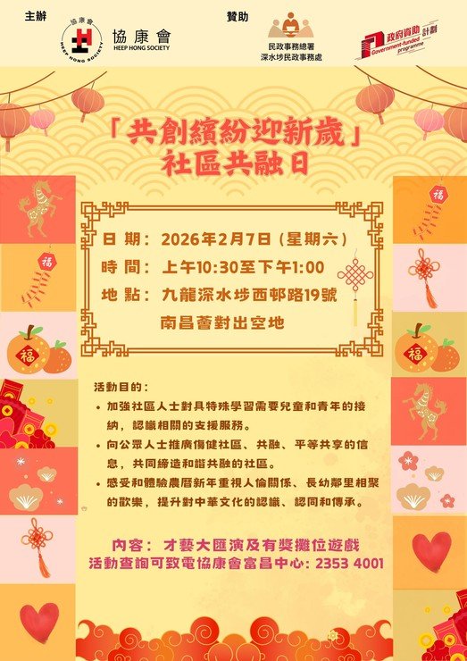 歡迎參與深水埗「共創繽紛迎新歲」社區共融日