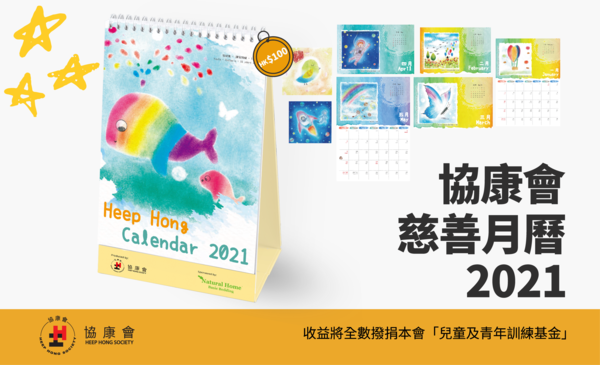 「協康會慈善月曆2021」每個售價HK$100,現正接受預訂,數量有限,售完即止。是次義賣收益將撥捐本會兒童及青年訓練基金,以幫助有經濟困難之有特殊需要兒童及青年,及早接受所需訓練和治療,避免因經濟困難而阻礙發展與接受訓練的機會。