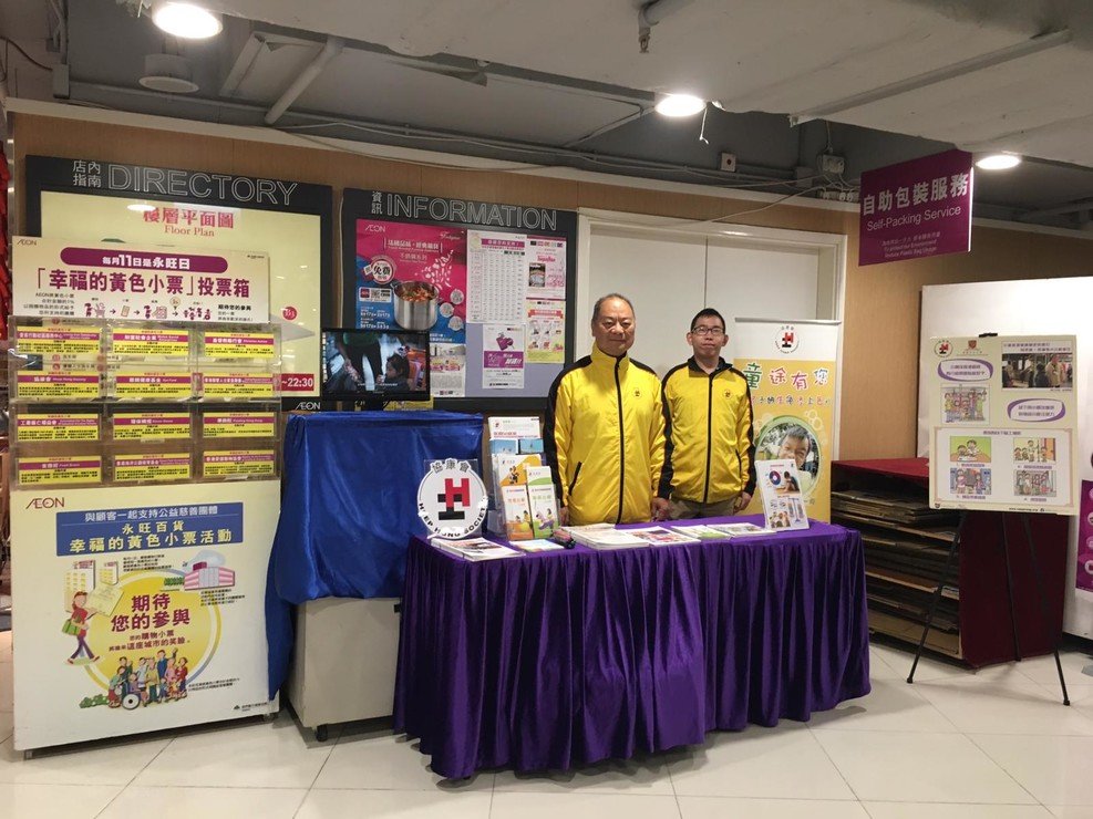 本會籌募推廣大使更將於以下分店設置攤位,向客人宣傳「幸福的黃色小票」活動並招募月捐會員。如果你在2月至7月期間的11日會到AEON購物,請多多支持,有機會更可與籌募推廣大使打打氣!攤位日期及詳情: