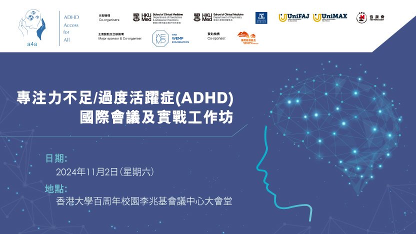 「專注力不足/過度活躍症(ADHD)國際會議」將於2024年11月2日假香港大學百周年校園李兆基會議中心大會堂舉辦,與業界一同見證《Lancet Psychiatry刺針精神醫學雜誌 ADHD系列研究》啟動儀式典禮,而協康會為其中一個合辦機構。