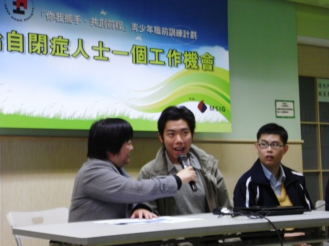 協康會與MSIG保險合辦的「自閉症青年職前訓練計劃」始於2008年,先後訓練了36名自閉症青少年。新一輪的計劃現正接受報名,凡16至25歲、現於主流學校或技能訓練學校就讀或已畢業的學生均可報名參加。為了惠及更多相關青年,協康會根據培訓計劃的內容,由心理學家主導,攝製了一系列模擬情境,教導自閉症人士如何應付求職和就業時的問題,並將之製作成《自閉症青年職前訓練計劃─學習錦囊》光碟,免費派發予自閉症青年和僱主。有意索取光碟者,或考慮聘用自閉症人士的僱主,可致電協康會海富家長資源中心,電話2777 5588。詳情也可瀏覽該計劃網頁/msig/website/