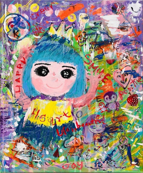 甘比及其女兒Josie的畫作創作的靈感,是參考了她們喜歡的藝術家Jean-Michel Basquiat的風格,Josie用上愉快溫暖的色彩丶活潑即興的筆觸作背景,表達SEN小朋友內心的單純快樂;而甘比在畫中也加上她最喜愛的企鵝及奈良美智的可愛斜眼女孩。這幅色彩繽紛的畫作的創作意念亦別具意義,甘比表示:「每個小朋友在父母心目中,也如小王子及小公主一樣珍貴,SEN的小朋友也不例外。盼望他們可以用笑容去面對生命,社會可以給他們多些機會,讓他們可以擁抱繽紛燦爛的美麗人生。」